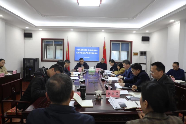 李青松总结了2022年度局党组落实全面从严治党主体责任情况,2023年局党组将认真学习贯彻党的二十大精神,严格落实市纪委监委关于“清廉岳阳”建设各项要求,全力支持驻局纪检组工作。通过强化政治监督、抓实问题整改、持续正风肃纪和一体推进“三不腐”,落实全面从严治党主体责任。坚持做到服务市场主体有“温度”、维护市场秩序有“力度”、推动责任落实有“准度”、狠抓廉政建设有“深度”,以永远在路上的坚定和执着把全面从严治党引向深入。