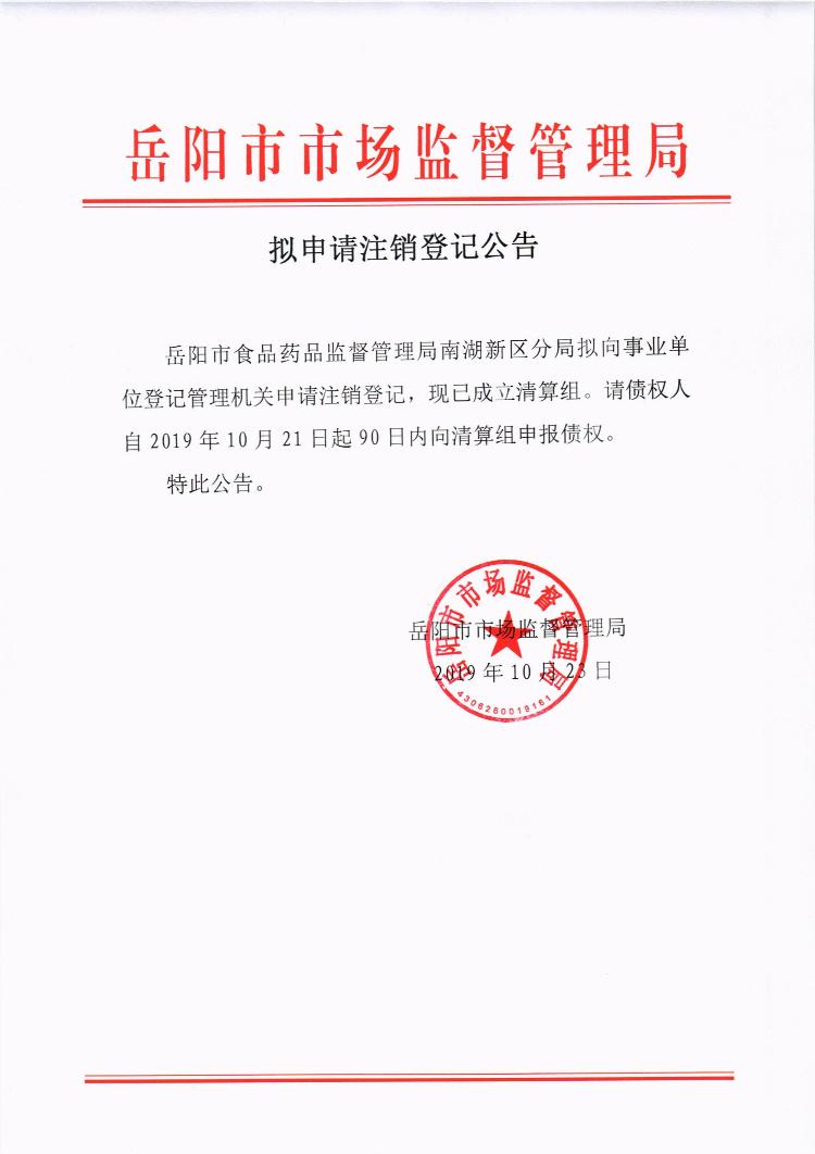 拟申请注销登记公告(20191023)