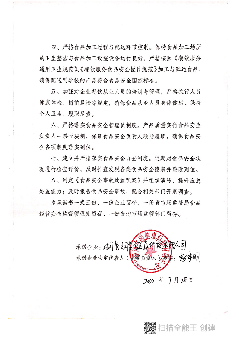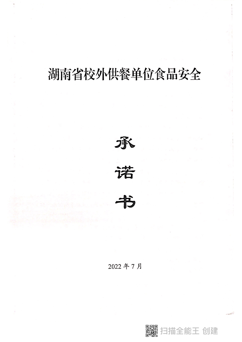 岳阳市校外供餐单位食品安全承诺书(湖南文膳健康科技有限公司)