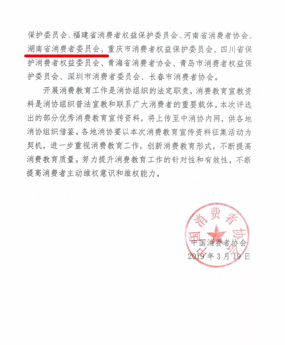 湖南省消委荣获“消费教育宣教材料征集优秀组织单位”称号