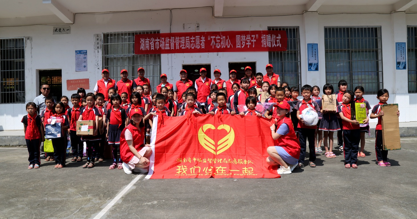 6月14日,省市场监管局志愿者前往新邵县大坻村,举行“不忘初心、圆梦学子”捐赠仪式和食品安全进农村宣讲活动。