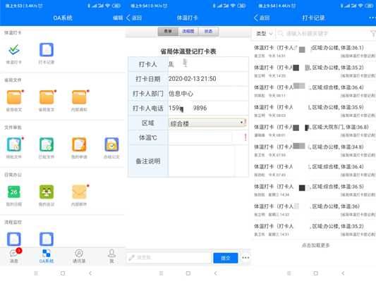 创新模式。针对每天省局志愿者登记体温时,多人使用一支签字笔可能产生的交叉感染问题,迅速依托OA系统实现体温线上打卡功能,化解人与人的接触,协助做好防控工作。