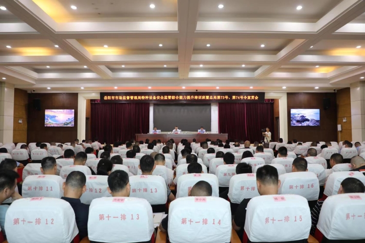 5月31日上午,岳阳市市场监管局特种设备安全监管综合能力提升培训班暨总局第73号、第74号令宣贯会在市委党校正式开班。省局特种设备安全监察局潘忠良局长授课。市局党组书记、局长李青松出席开班仪式并讲话。各县市区局特种设备工作分管局领导、特种设备安全监察股股长、市场监管所所长等140多人参加培训。会议由市局党组成员、副局长周喆主持。