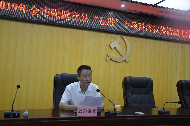 市市场监管局党组成员欧阳藏修要求,全市各级市场监督管理部门要提高政治站位,落实“四个最严”;要提高保健食品安全监管能力和水平;要形成工作合力;要强化监督考核。通过开展好保健食品“五进”宣传活动,引导公众合理选择,科学食用保健食品,切实维护消费者权益。