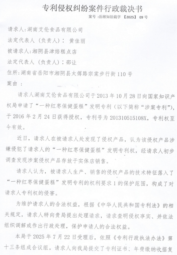 专利侵权纠纷行政裁决书(岳湘知法裁字【2025】9号)