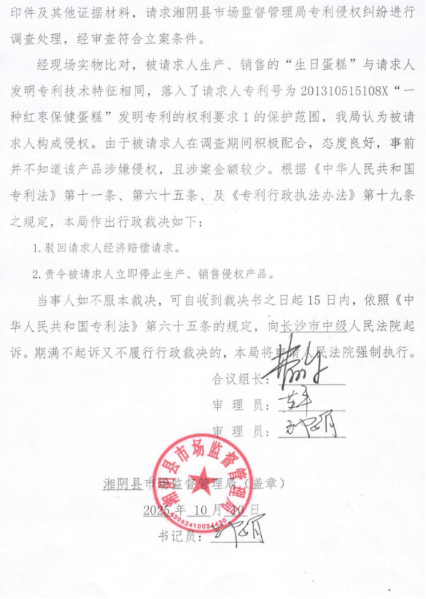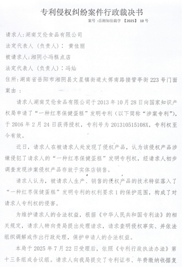专利侵权纠纷行政裁决书(岳湘知法裁字【2025】10号)